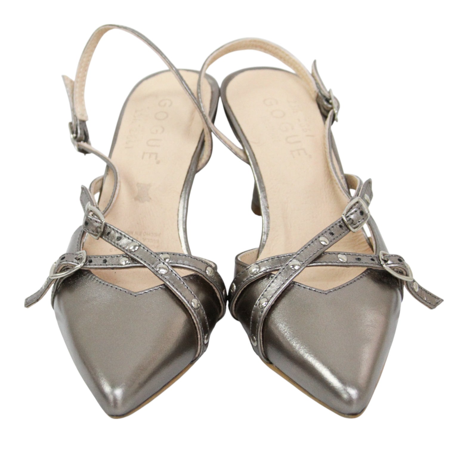 Este diseño combina un estilo clásico con detalles modernos: su punta afilada y tiras cruzadas ajustables con hebillas y pequeños STUDS lo convierten en tu statement piece.