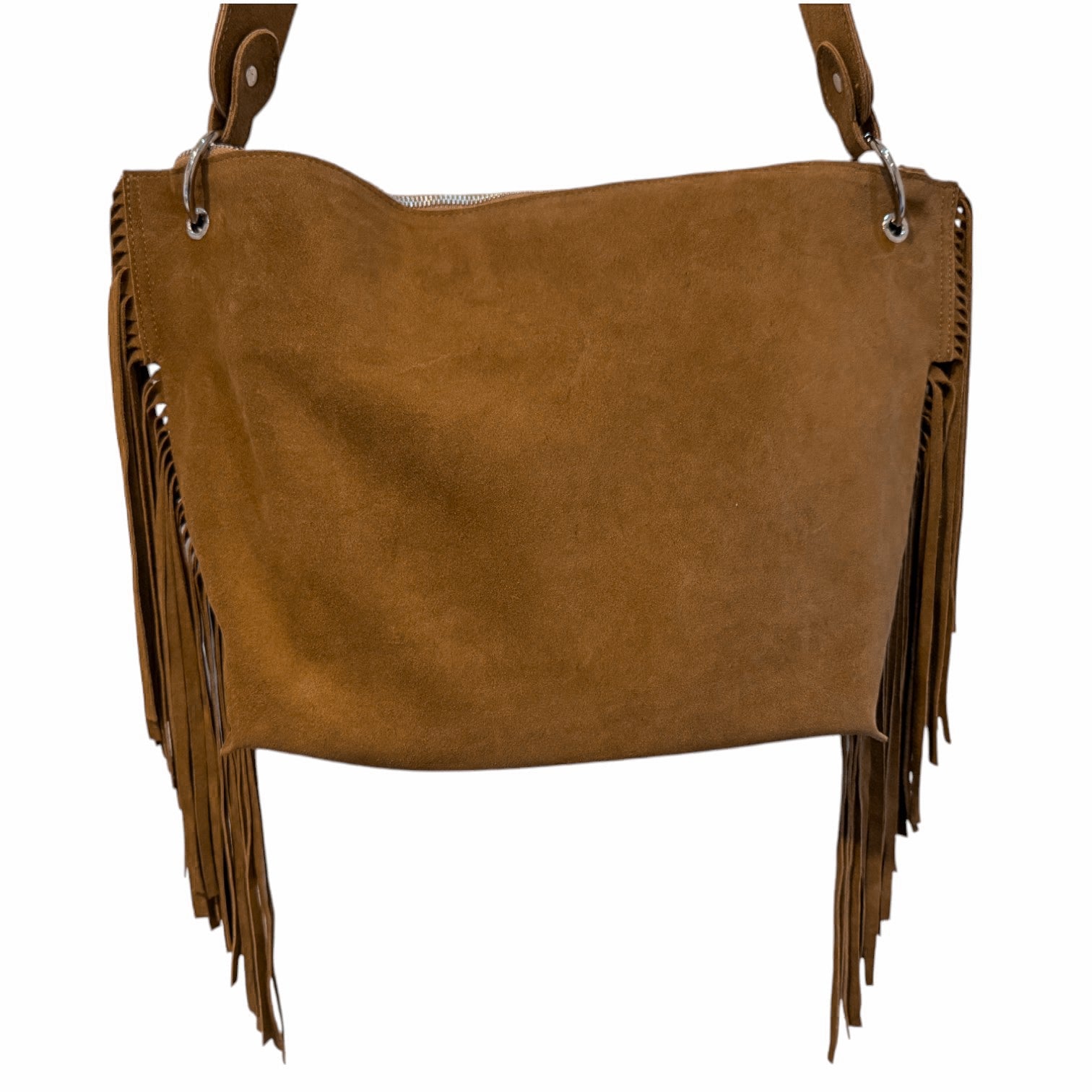 Esta bolsa de piel 100% genuina es el toque único que tu look necesita. Hecha artesanalmente en México, destaca por sus flecos laterales que aportan movimiento y estilo bohemio.
