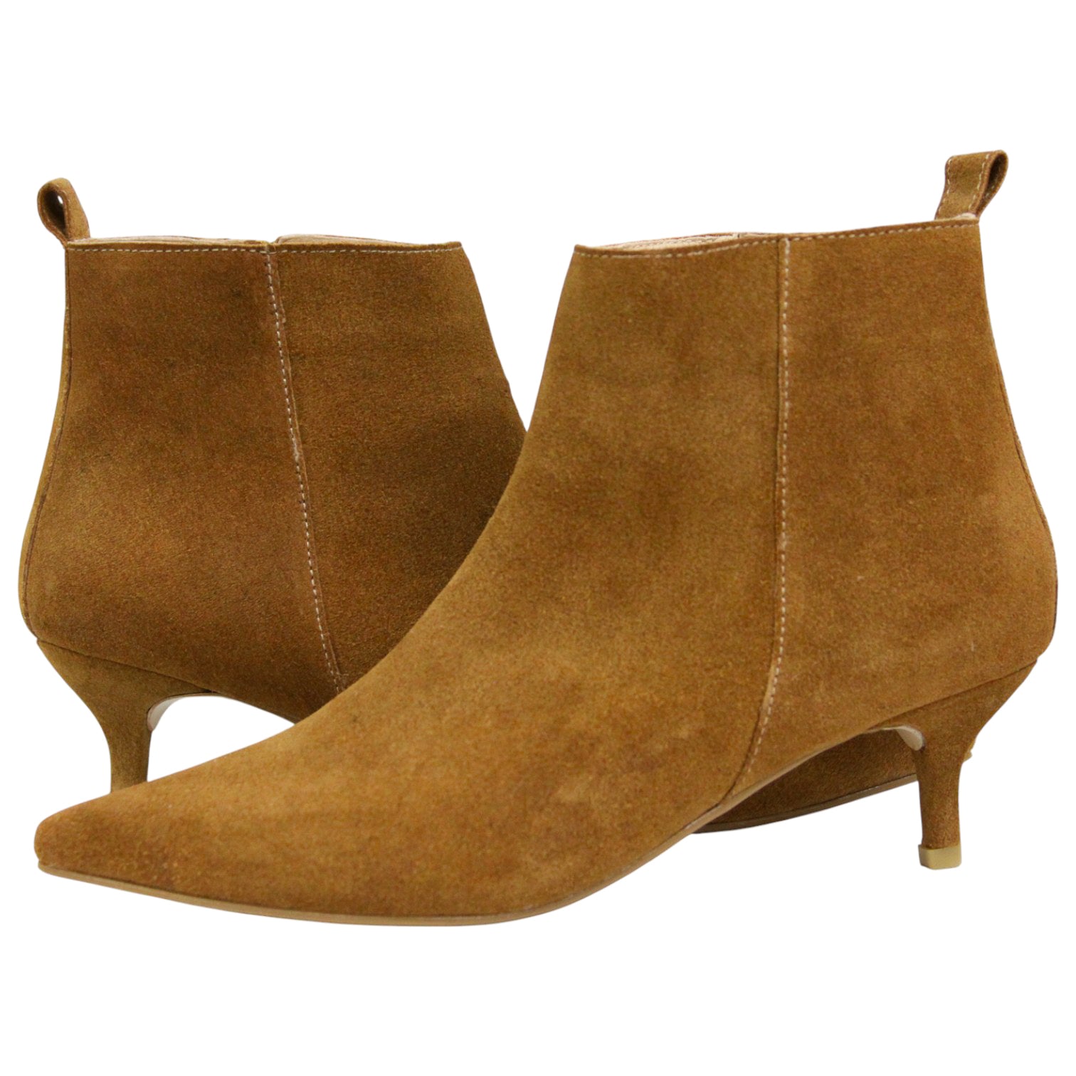 De piel lisa con acabado suave y cierre lateral, su tacón kitten de 5.5 cm te da altura sin perder confort.