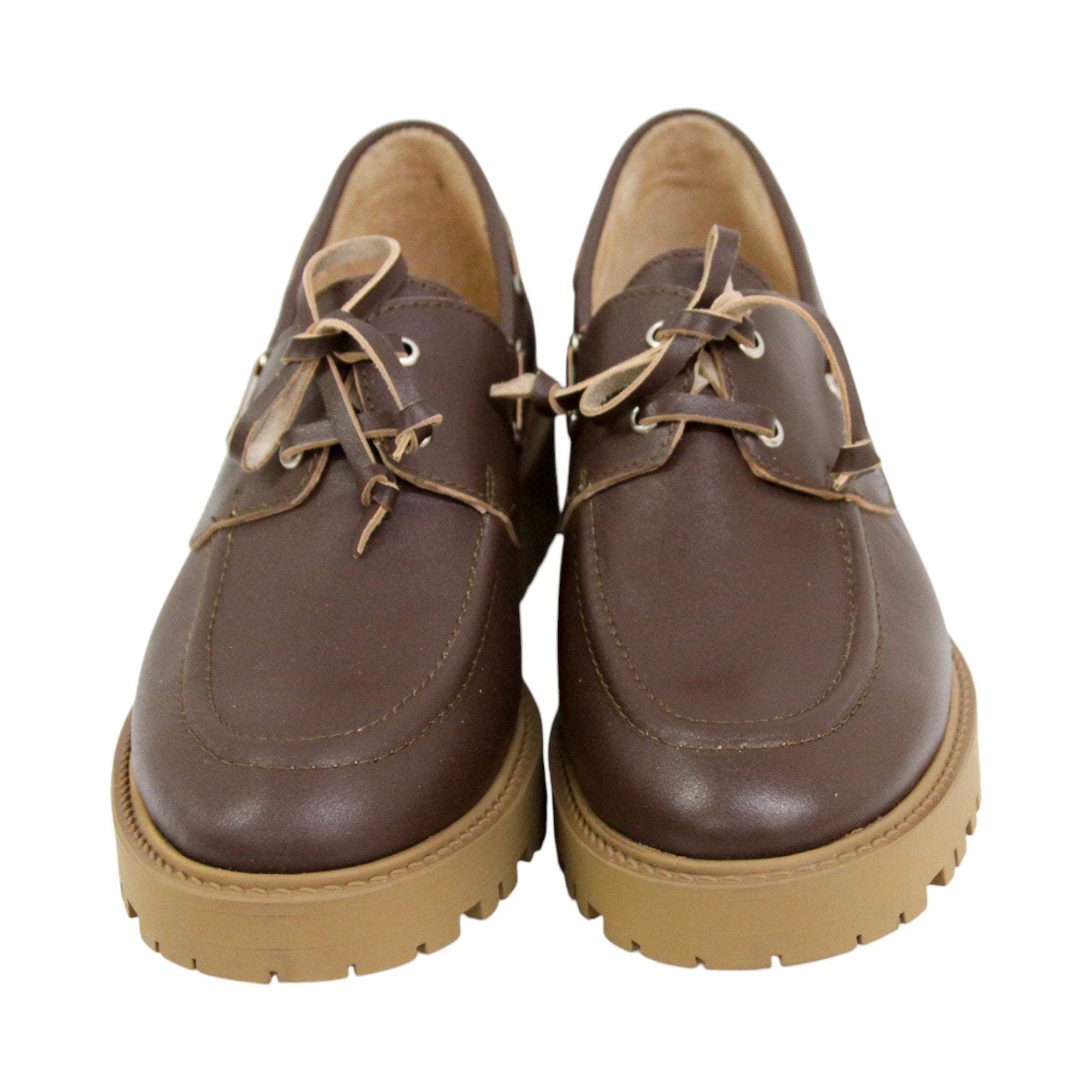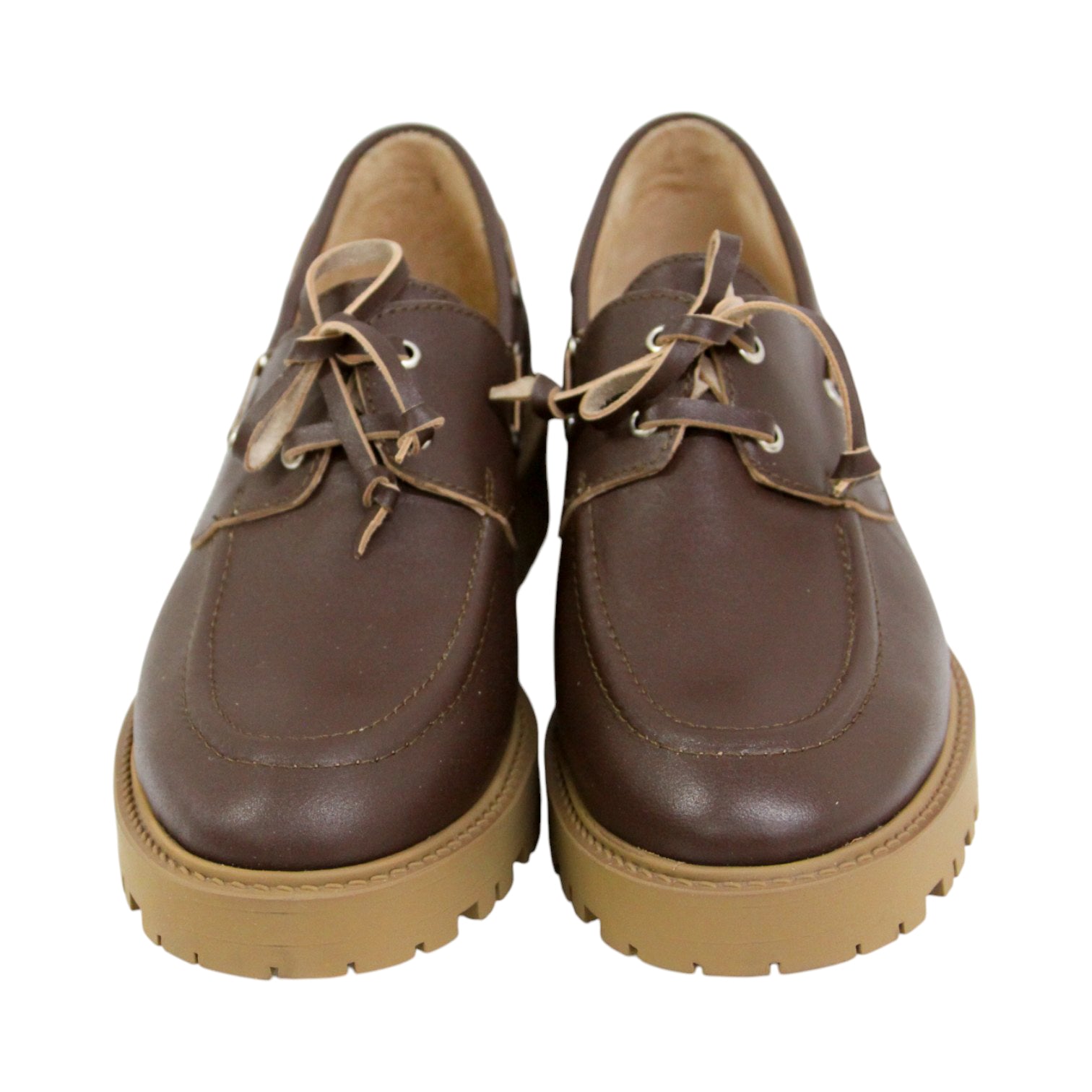 Disponible en NEGRO Y CHOCOLATE, su diseño con cordón de piel y suela robusta le aporta un aire sofisticado y versátil, perfecto para elevar cualquier look, desde el más casual hasta el más elegante.