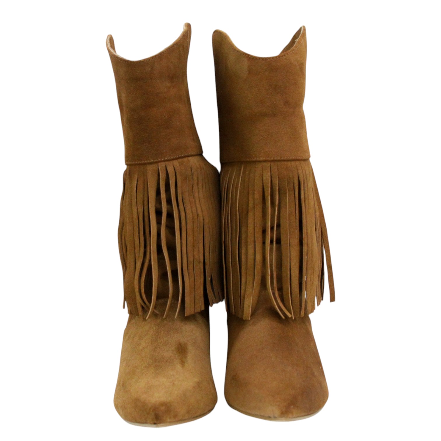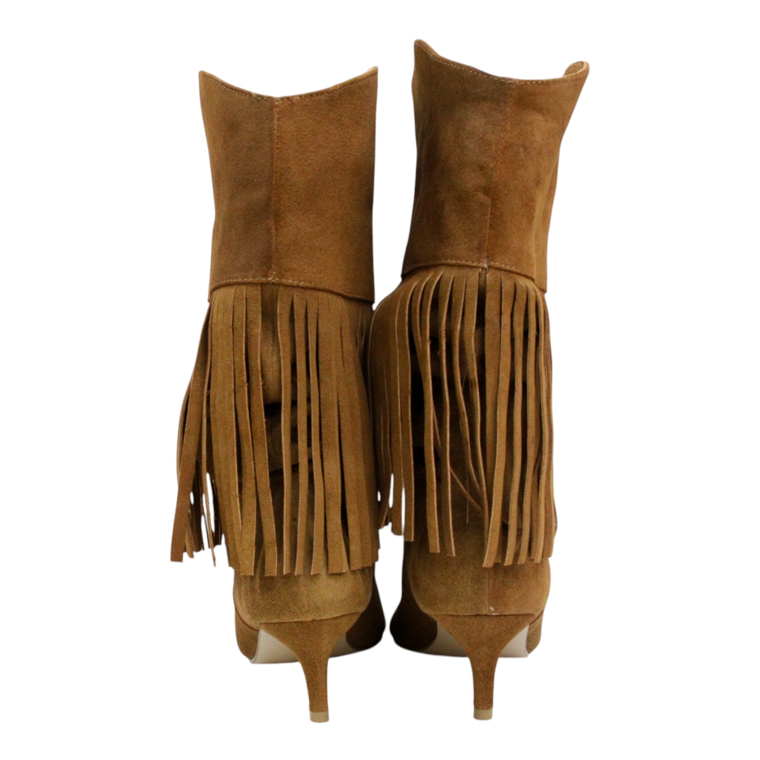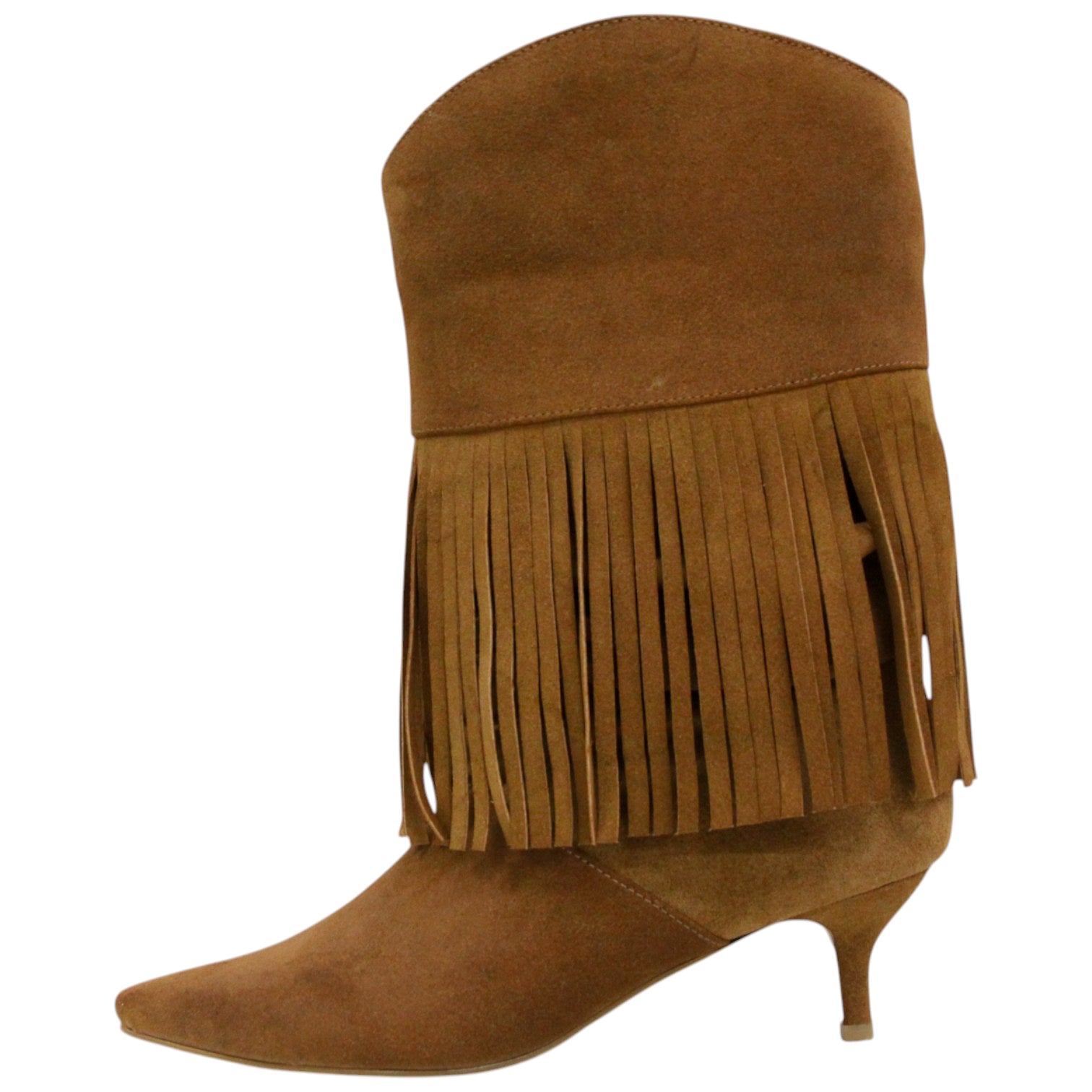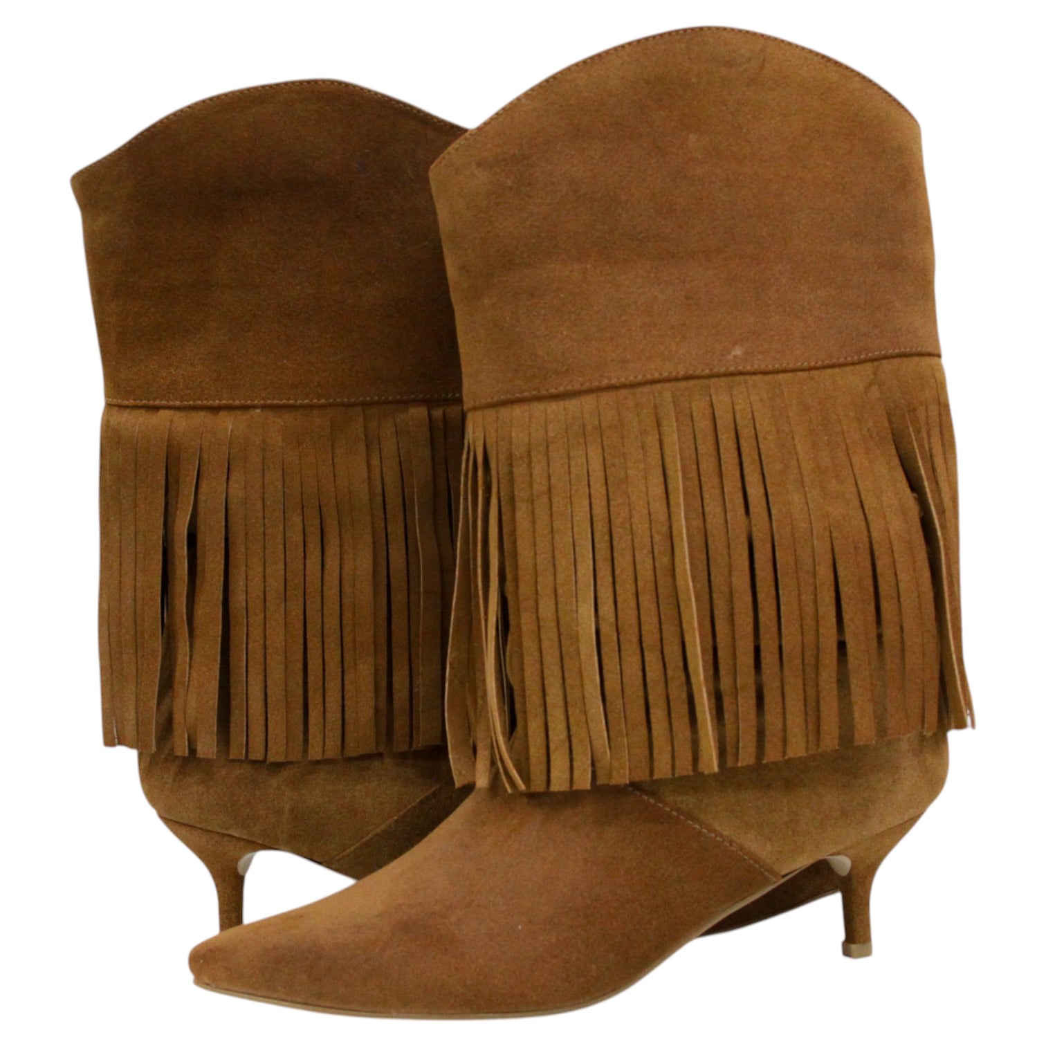 Isabel, El botín que se roba todas las miradas. Su diseño en gamuza con flecos aporta movimiento y un aire boho-chic irresistible. Súper versátil, perfecto para elevar tus looks de día o de noche.